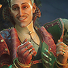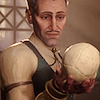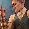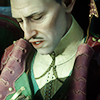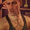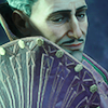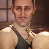 Description: A middle-aged white man smirks over his very elaborate, elegant, pauldron
